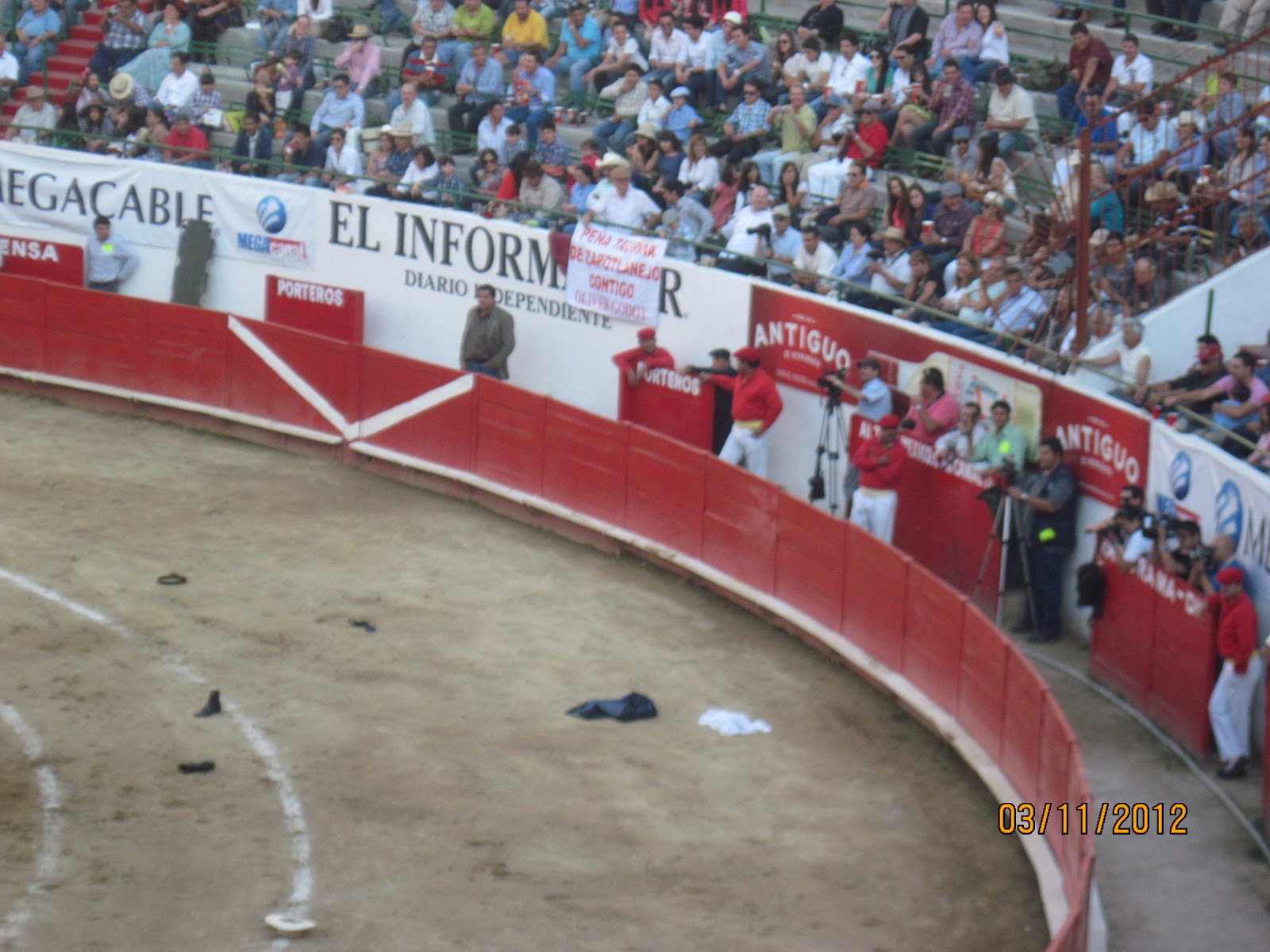 The bullfights lasted 20-30 minutes each. I am not going to describe what happens at each stage of the "fight". I will say that from start to finish, it is sheer torture for the bull. The bull has absolutely no chance of coming out on top of this "fight". Some people tell me it's part of Mexicos' culture. In response to that I say slavery was part of the United States culture! So was burning witches at the stake! I do have pictures that follow, however none show the killing of the bull.